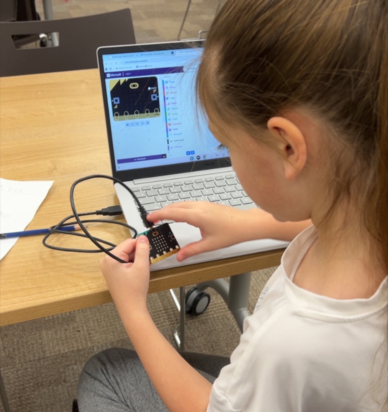 Using tools like micro:bits, students can train AI to recognize objects or actions, whether it’s different shapes, sizes, or gestures like a thumbs up or happy face.