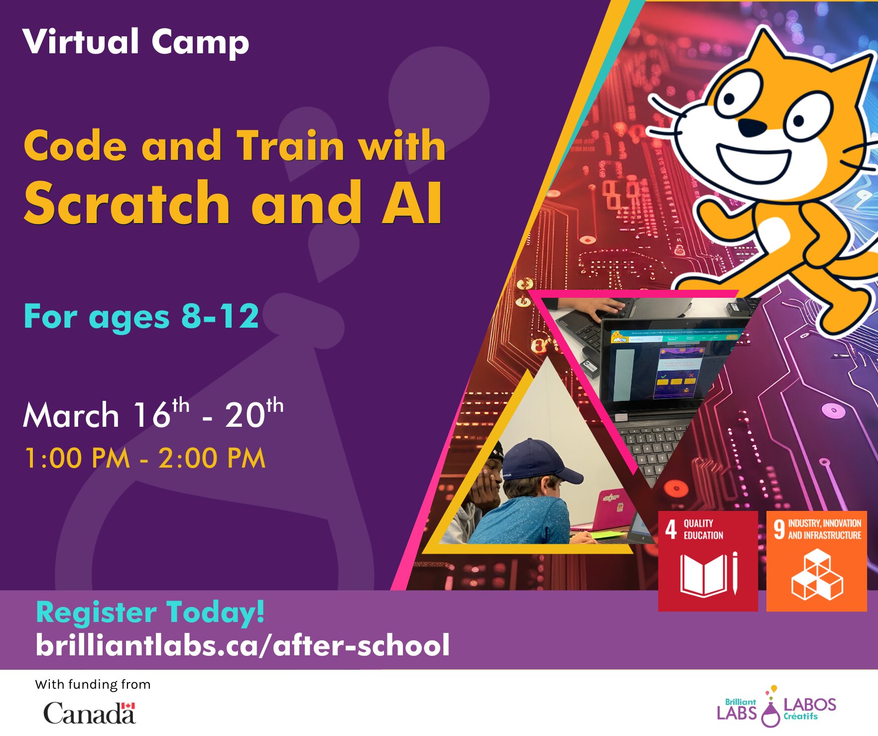 Virtual Introduction to Scratch March Break Camp: From 1:00-2:00pm (ADT) on March 16th to 20th
